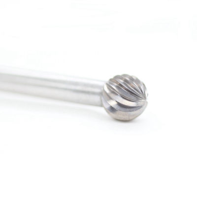 BABOS 10mm dia ball carbide burr with customized 200mm long shank on 1/4'' shank dia, single cut design for efficient metal grinding, deburring, and shaping.